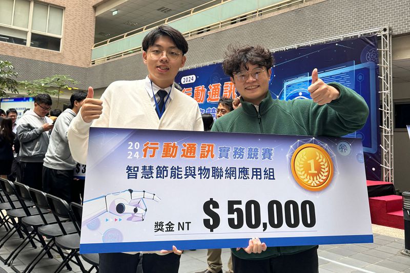 「2024行動通訊實務競賽」由教育部「智慧節能網路跨層系統整合教學聯盟」主辦,歷經三個月的初賽、複賽等篩選,共有10支隊伍入選「智慧節能與物聯網應用組」決賽。其中,「陽光的溫暖-智慧監控系統用於節能農產品乾燥」為題,在眾多競爭團隊中,拿下冠軍。