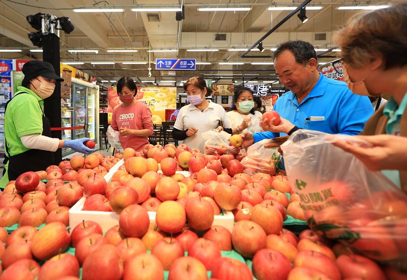 青森蘋果產地直送,家樂福推出優惠,買氣踴躍。(記者吳峙嵩攝)