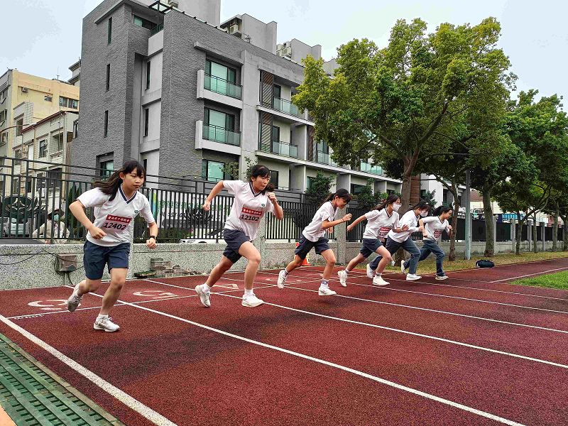 各班選手們先在活動中心檢錄就緒,各項徑賽便就此揭開序幕,PU跑道上的一百公尺、兩百公尺個人賽,以及四百公尺接力賽都是大家關注的焦點,同學們賣力的加油聲此起彼落,響徹雲霄,還有班導師們在一旁用心記錄同學們奮戰的身影。當選手們奮力衝過終點線,都有同學們在終點迎接他們,更送上熱情的掌聲,這無不都是團隊精神的展現,更是最美的青春回憶。