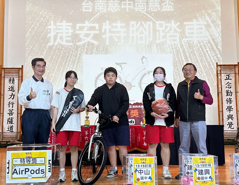 臺南慈中17週年校慶,自12月7日的「清靜源頭碳為關止」無塑園遊會,至今日登場的中學部運動會,透過力行無塑及團隊合作,共同歡慶臺南慈中的十七歲生日。選手們在運動場上的競技與合作、同學們在場邊的加油與鼓勵、工作人員不辭辛勞的堅守崗位,在在無不展現臺南慈中的團隊精神,為本次運動會留下許多難忘回憶。感恩許多外校師生們的一同參與和祝福,期盼臺南慈中永續發展,蒸蒸日上;期許學子們帶著運動家的精神,勇於迎接各項挑戰,奮鬥不懈!