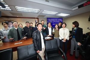 立法院內政委員會16日再度排審攸關調整罷免門檻的選罷法修正草案,朝野立委在委員會外走廊爆發推擠衝突,因國民黨立委搶先占領主席台,民進黨立委不得其門而入,上午9時2分內政委員會召委、國民黨立委徐欣瑩宣布初審通過選罷法修正草案,並在9時3分宣布散會。
