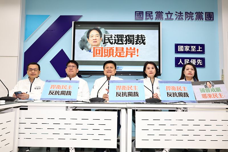 國民黨立法院黨團總召傅崐萁、書記長林思銘、首席副書記長王鴻薇、副書記長羅智強、國民黨立委許宇甄等人,也在立法院國民黨團召開「民選獨裁,回頭是岸」記者會。傅崐萁表示,在總統賴清德宣布反守為攻後,民進黨立委多次霸占立法院議場、委員會的主席台,癱瘓議事。賴總統的獨裁政權已經讓民進黨肆無忌憚,在國會恣意妄為。