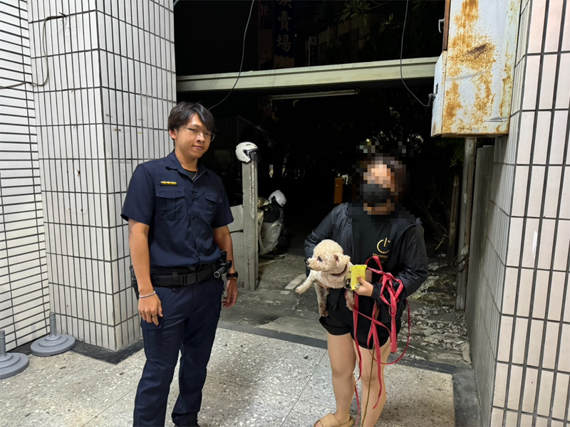 三民二分局民族所警員李宗翰日前值班時,遇一黃姓男子牽著一隻狗走進派出所,稱在正興國中散步時發現狗狗獨自在校園裡蹓躂,後頭未有主人跟著,然狗狗毛髮還算乾淨整齊,推測應該是剛走失的毛小孩,因此將其帶至派出所,請求警方協助。李員見狗狗戴有項圈,趕緊通報動保機關,待專員至所掃描晶片,取得主人資料後,再由備勤警員王炳琮協助連絡至所領回愛犬。狗主人陳女(30歲)至所表示因家人疏失未將大門關好,才讓愛犬比熊逮到機會偷溜出去,而這段時間在住家附近尋找皆無所獲,直到接到警方電話,立刻從住家趕來,見到安然無恙的比熊後才放下心中大石。離開前陳女不忘對警方協助聯繫表達感激之意。(圖文:記者張福全)