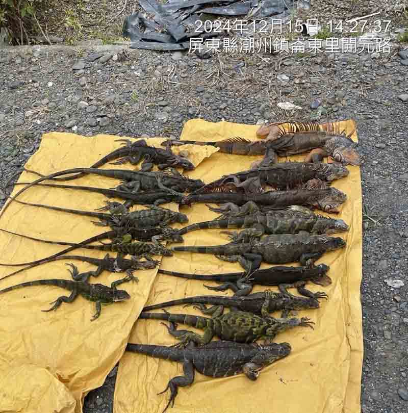 113年12月15日於潮州鎮移除之綠鬣蜥。(圖/屏縣府農業處)