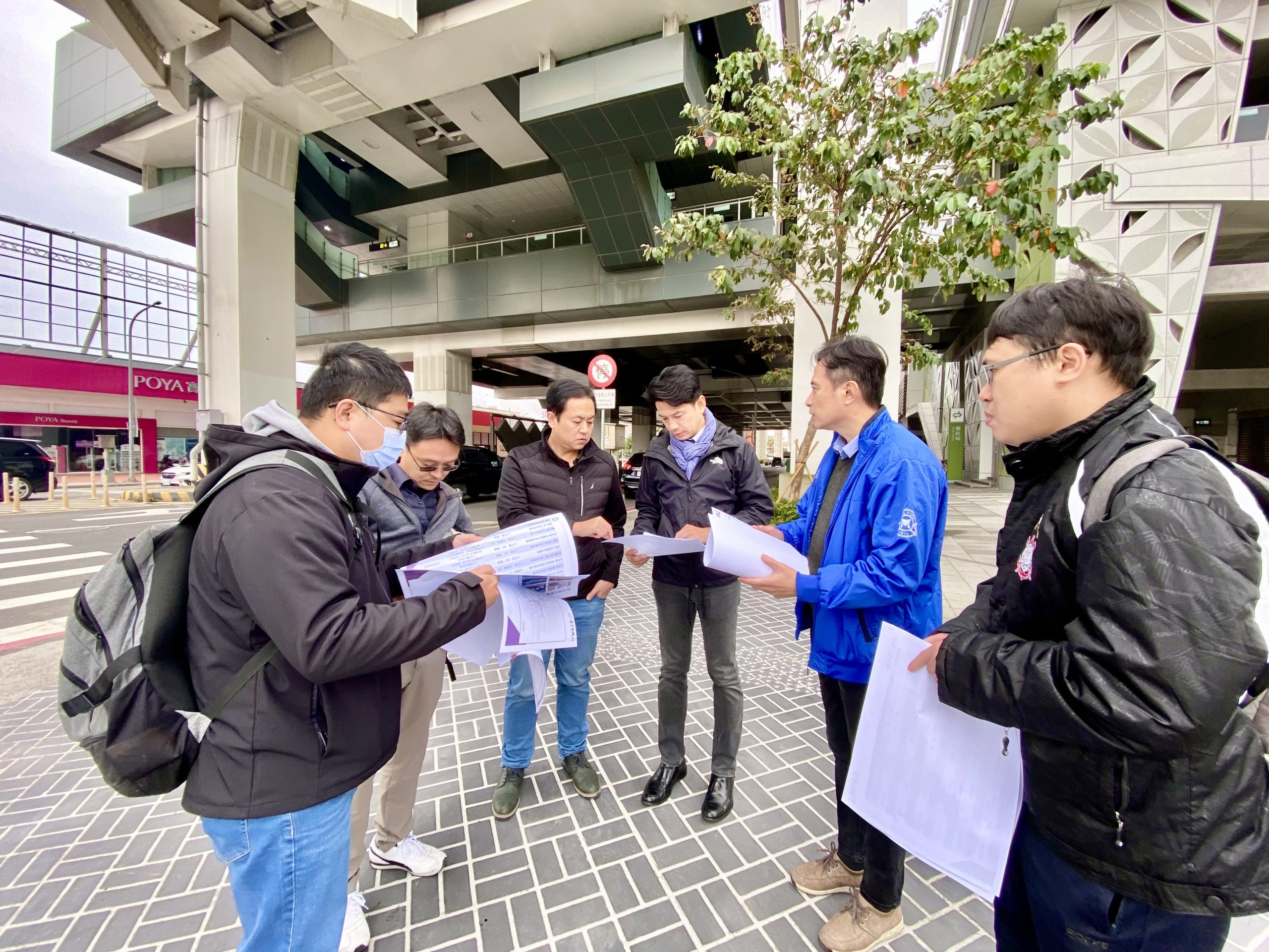 「道路安全第一!施工進度超前!」葉局長表示,目前台中市已完成53處易肇事路口,統計每月的交通車故量大幅下降25%,經勘查北屯區改善路段近完成階段的松竹路與敦富路口。