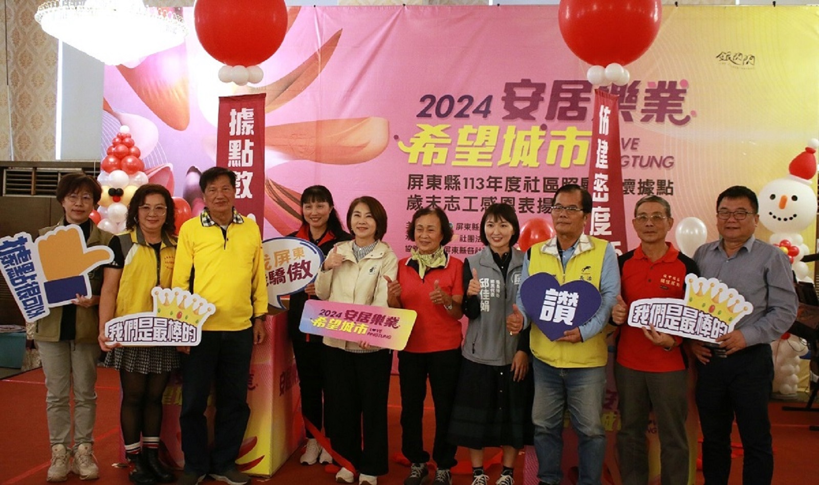 113年屏東縣社區照顧關懷據點歲末志工表揚活動首場屏南場於恆春舉辦,屏南地區60處社區據點約630位志工出席;13日屏中場於潮州舉辦,屏中地區90處據點約930位志工出席;17、19日屏北場於長治舉辦,屏北地區共179處據點,共出席1850位志工。活動開場表演除邀請銀閃閃街舞展演外,也特別播放本縣33鄉鎮據點服務志工的紀錄影片「刻在心上的微笑」,藉此肯定據點志工一年來的辛苦成果。
