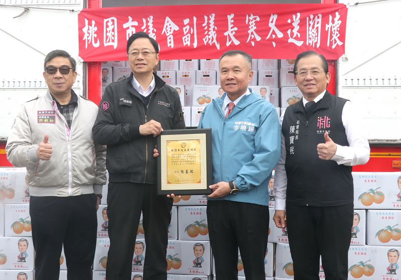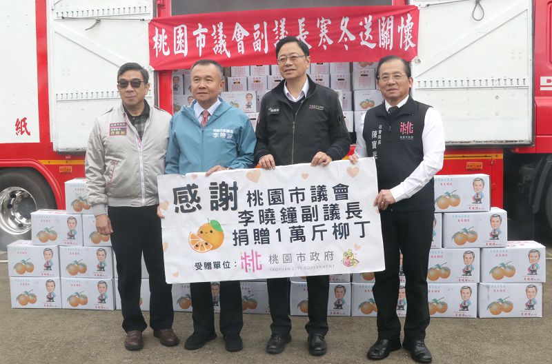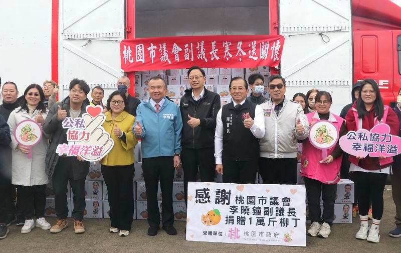 【記者鍾陽正桃園報導】桃園市議會副議長李曉鐘熱心公益不遺餘力,自96年起連續17年向雲林古坑果農訂購萬斤柳丁,由產地直送桃園捐贈給桃園弱勢家戶及社福機構。今年特於20日上午在皇家薇庭婚宴會館舉行捐贈儀式,由市長張善政代表接受,並回贈感謝狀,感謝其長期不間斷的善心義舉,讓受惠的弱勢團體在寒流來襲下得到溫暖。他也品嘗現切柳丁味道,頻頻點頭稱讚柳丁品質佳。他表示,副議長很有心,採購柳丁不但關懷弱勢,也照顧到農民生計,一舉數得,幫助了許多人。社會局長陳寶民、桃園區長許敏松及各受贈單位代表等皆一同出席。