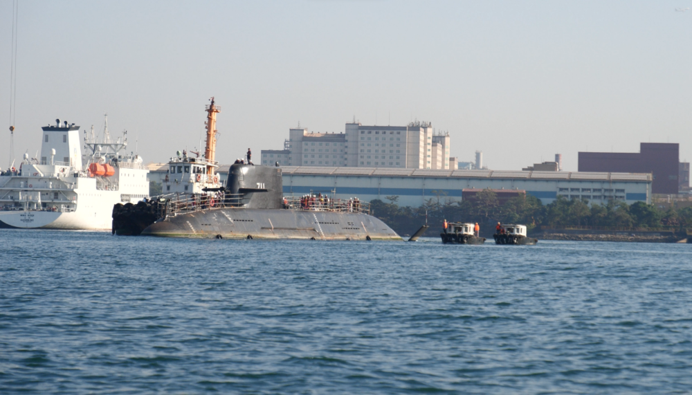潛艦國造原型艦海鯤軍艦 移船入塢測試作業