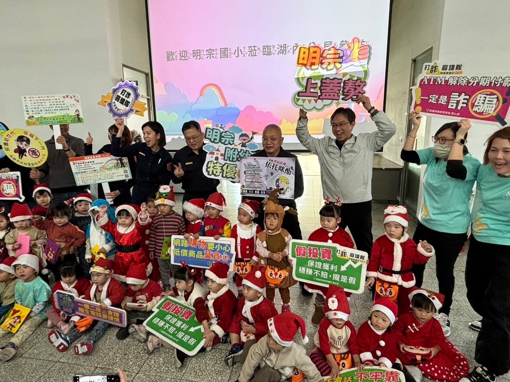 聖誕節即至,明宗國小附幼小朋友在老師與家長陪同下,穿著可愛的聖誕服飾前往湖內警分局,展開獨特的聖誕踩街活動,為嚴肅的分局帶來童趣及歡笑;湖內分局特安排豐富的宣導項目,向孩子們講解各類安全常識,並用淺顯易懂的動畫影片,教導如何辨識危險情境自我保護,還介紹常見的犯罪手法,提醒孩子與家長們如何提高警覺,另透過小遊戲及有獎徵答,讓他們了解遵守交通規則的重要性。湖內分局陳義宏表示,分局藉由親子共學與寓教於樂方式,教育小孩如何保護自己,達到安全社區的目標。(圖文:記者于欽智)