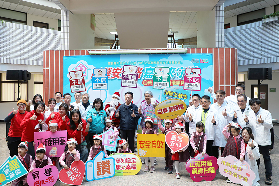 活動開場邀請大林鎮昇學幼兒園小朋友創意短劇表演,以活潑逗趣的方式讓民眾瞭解藥事照護服務的內容,同時公開表揚8位熱血付出的社區藥師,肯定藥師熱心投入藥事照護服務,藥師們不僅提供照護服務,更扛起輔導新進藥師執行照護工作的責任並擔任食藥保衛團講師;焦點儀式則由翁縣長、衛生局長趙紋華及與會貴賓們共同將藥事照護成果張貼於健康照護道路背板,象徵成果豐碩並邁向健康的康莊大道。