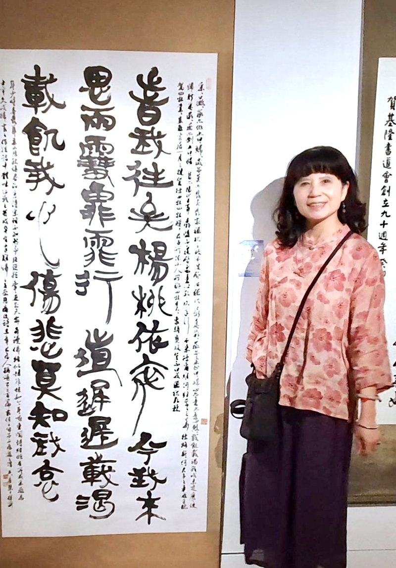 吳麗琴專研各體書法,更以研究基隆書法淵源和名書法家聞名,早先就已獲得碩士學位,發表書法有關的論文,求教於她的書法愛好者不少,老少都有。