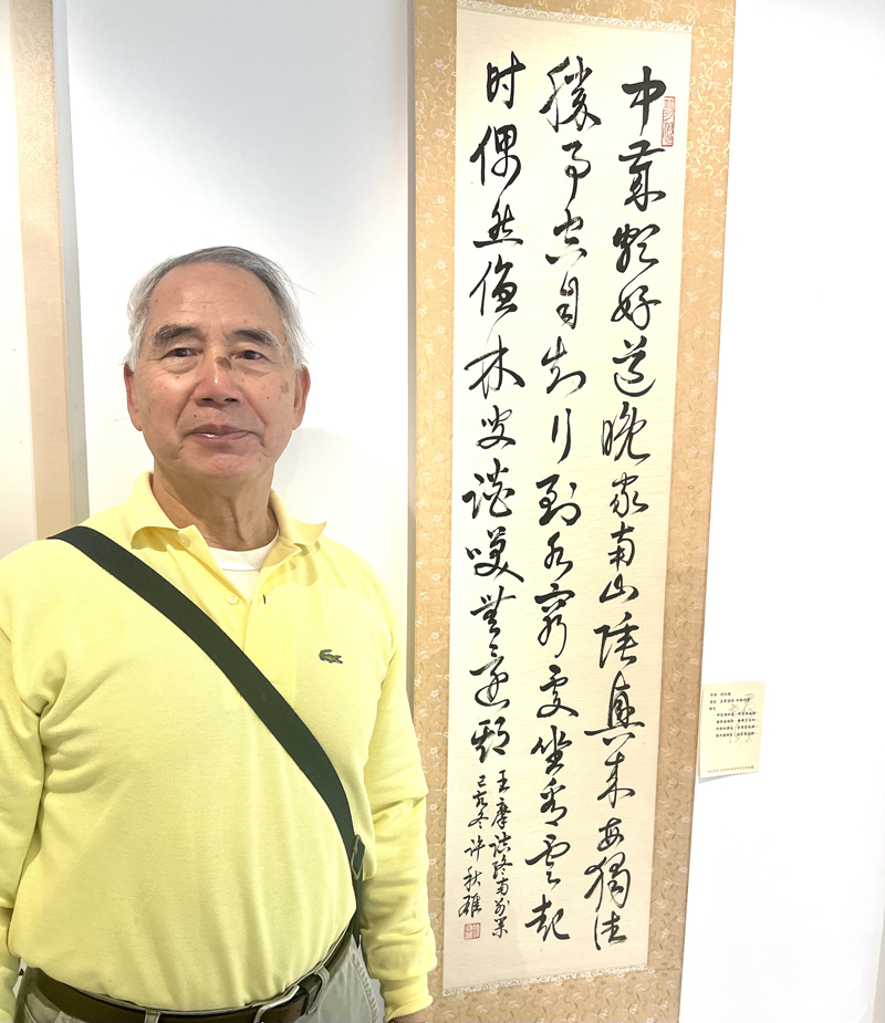 78歲的許秋雄展出的行草王摩詰居士的詩,行雲流水,頗受好評。(記者李伯元攝)