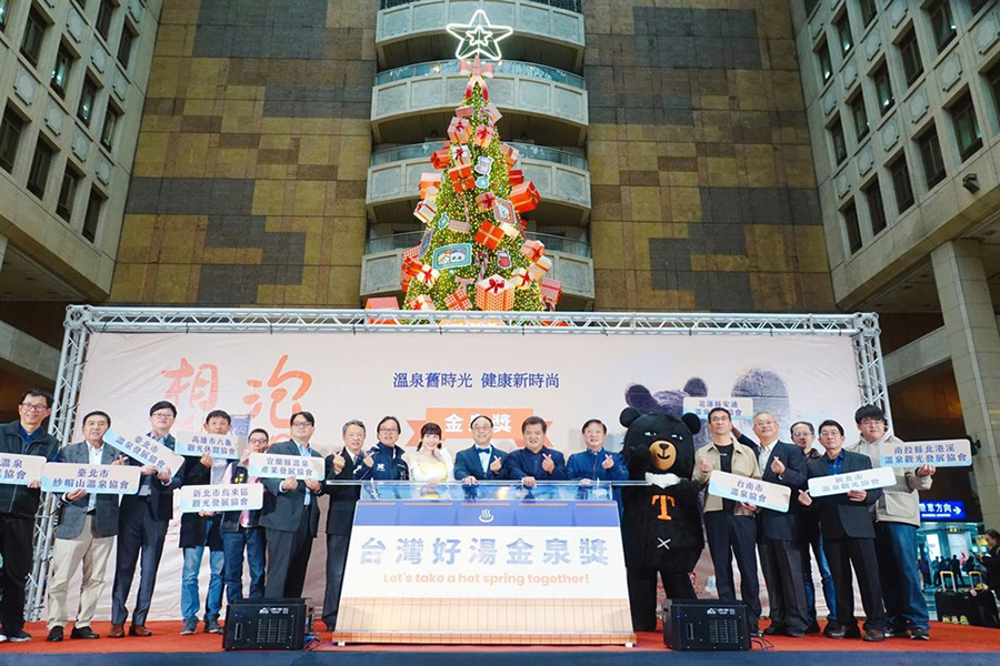 【記者劉奕廷、鐘翠蓮台北報導】秋冬之際天氣微涼,正是享受溫泉的好時節,昨(12/26)日觀光署聯合全臺灣19個溫泉區業者,於臺北車站舉辦「2024-2025台灣好湯金泉獎」記者會,來自全臺的溫泉業者齊聚一堂,共同為票選活動揭開序幕,找來中信兄弟啦啦隊女神峮峮代言。