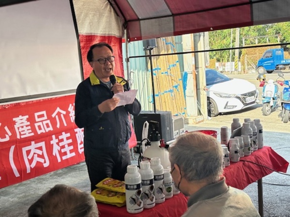 農業部農業試驗所主任秘書謝廷芳博士研發主持人,現場指 導介紹,針對產品的特性、實例分享實績介紹,並與現場貴賓交流及分享歷程。