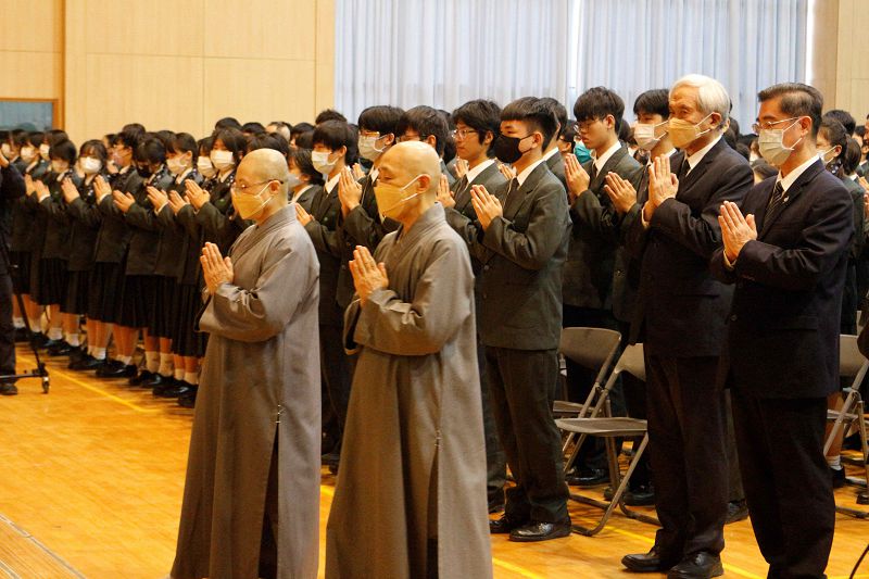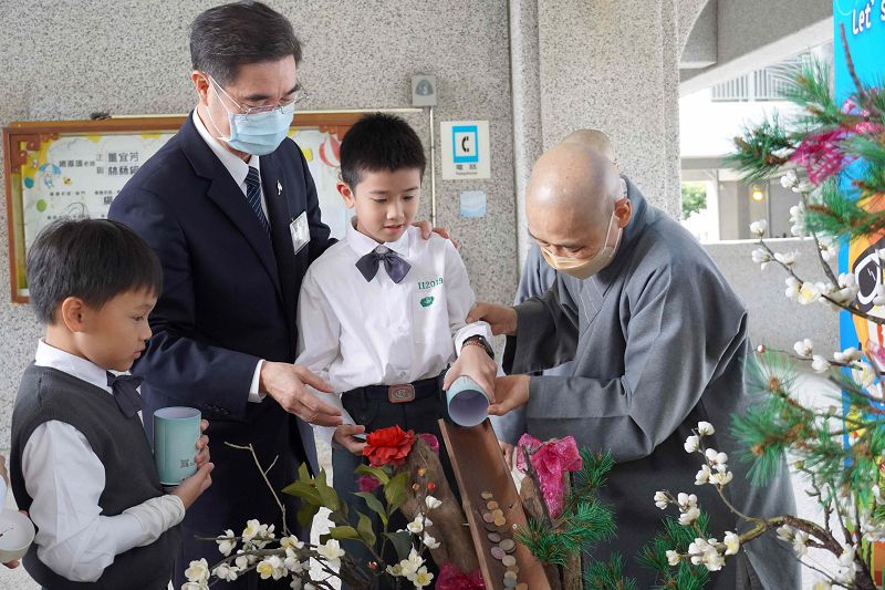 由靜思精舍德勷師父與德英師父代表敬愛的 師公上人為全校師生獻上祝福。今年歲末祝福的主題為「正念勤修學與覺,精進力行菩薩道」,祈願人人身體力行,傳承二千五百多年前佛陀的精神理念,回歸佛陀故鄉,弘法利生,並透過2024年慈濟大藏經引領師生回顧年初的日本能登半島地震、四月的花蓮強震以及在佛國弘法利生,為他們翻轉人生,提醒我們要付出愛心關懷需要幫助的人,把握時間做正確的事。
