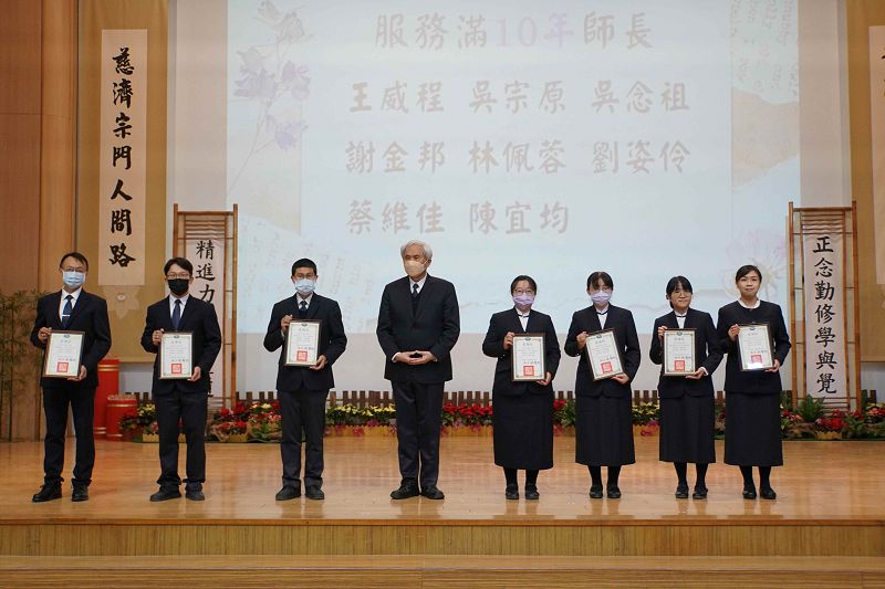 2024年臺南慈濟高中歲末祝福於12月25日莊嚴登場,近日陰雨綿綿的天氣,終於再度放晴,像是大地也在為我們祝福般,令人溫暖歡喜。此次歲末祝福合計有二千多位親師生共同參與,分別分為中學部、國小部及幼兒園兩個場次,誠摯邀請家長入校參與,同時在莊嚴的歲末祝福典禮上表揚服務滿十年的師長,以及服務滿五、十、十五年的人文老師、大愛媽媽、人文志工、教育志工、家長志工們。全校師生及參與的家長皆以恭敬的心,歡喜領受富含 師公上人愛與祝福的福慧紅包,一同感恩平安吉祥的2024年,虔誠迎接2025年的到來。