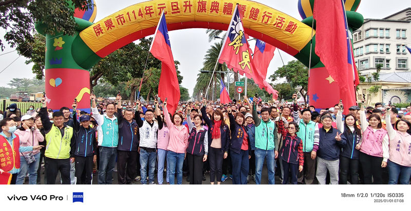 屏東市元旦升旗暨健行 逾萬人寒冬健康齊步走