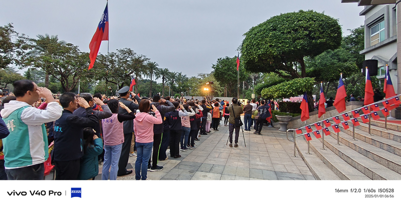 屏東市公所在市公所前廣場舉辦「元旦升旗典禮暨健行活動」。(圖/記者范家豪攝)