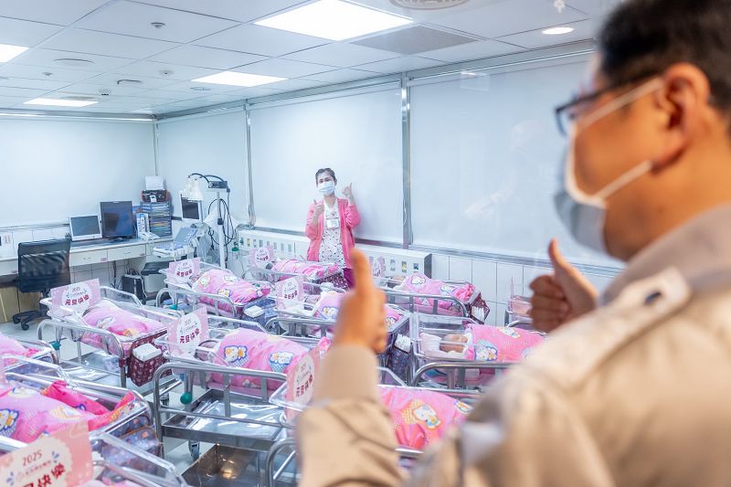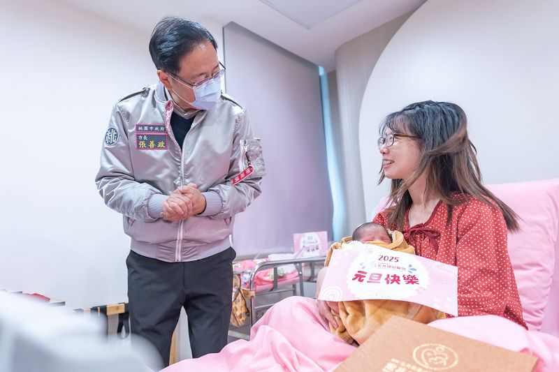 【記者吳艾芸桃園報導】桃園市長張善政114年1月1日上午在婦幼發展局長杜慈容、衛生局局長賈蔚、宏其婦幼醫院院長張紅淇等人陪同下,前往中壢區宏其婦幼醫院探視元旦寶寶,並致贈新生兒賀禮。