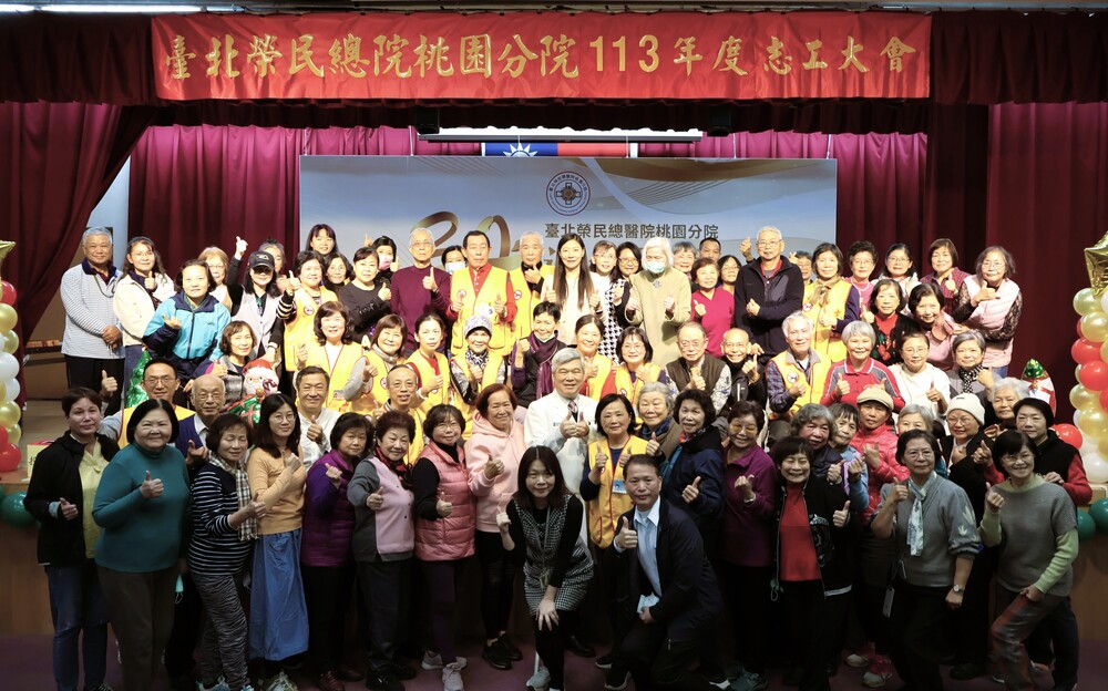 【記者徐玉英桃園報導】臺北榮民總醫院桃園分院於歲末舉辦「113年志工大會暨感恩餐會」,活動於該院行政大樓B1大禮堂熱鬧展開。大會由副院長楊斯年主持,他在致詞時高度讚揚志工們的無私奉獻與不懈努力,並向全體志工表達最深的感謝。他說:「志工是醫院最重要的夥伴,無論是在大廳、門診候診區、病房、日間照護中心,甚至於社區活動中,都能看到志工們熱心服務的身影。他們的付出不僅協助病患及家屬,更傳遞溫暖與關懷,為醫院增添了無數美好的故事。」