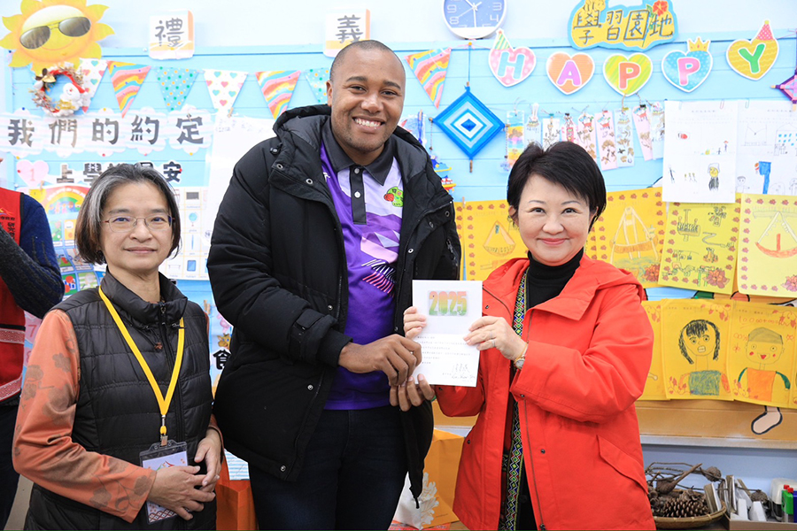 盧秀燕感謝校長劉姿芬努力辦學,推動英語、泰雅語及閩南語教學,讓學校位處偏遠卻有極高的競爭力,她特別與來自南非的外師Milo致意,並致贈已儲值1年車資、首度亮相的「台中捷運2025年度票卡」,此卡可用於搭乘公車、YouBike 等交通工具及小額消費,期勉他在台灣可以申請永久居留權,屆時就能享有雙十公車優惠。