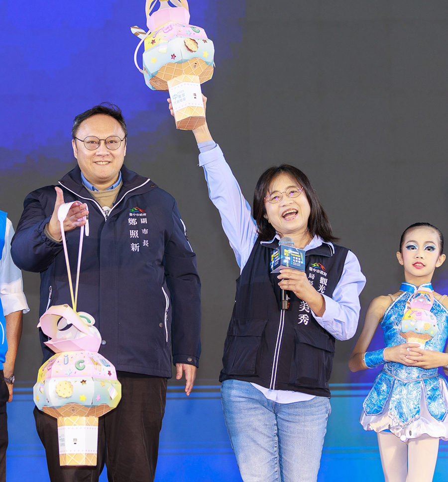觀旅局指出,繽紛可愛的「甜甜蛇」小提燈也是此次燈會一大亮點,此次將蛇身設計為粉紅色霜淇淋造型,裝飾五顏六色的可愛配料,以字母軟糖拼出台中的英文,甜筒造型的提把增添趣味性和實用性,彷彿手裡握著一支美味甜筒,方便攜帶、也可手提,燈光點亮時,霜淇淋蛇如同融化在夜晚的甜蜜驚喜,喚起童心與幸福感。燈會期間每日下午3時30分開放排隊,4時開始發送,數量有限,每人限領一盞,發完為止。