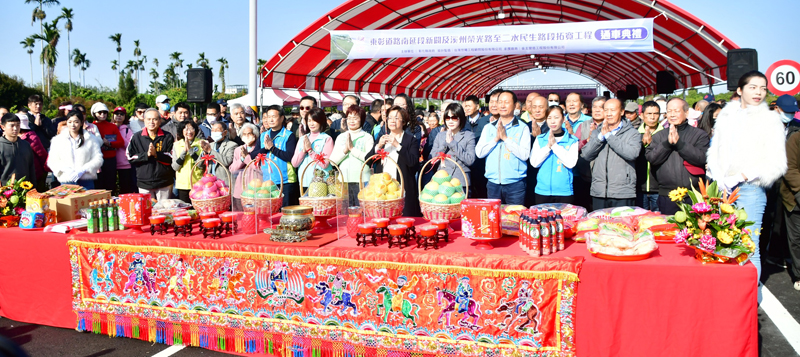 縣長王惠美表示,東彰道路是全縣第一條臨八卦山脈興建的東縱向快速道路,總長度約28.2公里,總經費投入約88億元,南延段在道路闢建過程中,為避免與民爭地,在徵收過程中都盡量避開民宅,主要以公有的土地來減少民怨,首創在道路下方設置滯洪箱涵,改善當地排水系統,達到減災防洪的功能,且提供近兩萬公噸的剩餘土石方來建河堤邊坡,以再生的瀝青混凝土作為材料,來建堤外的聯外道路,方便農民來使用,且將台電高壓電塔下地化,來美化天際線,不僅兼顧民意及環保,打通交通,也進而促進觀光,讓彰化更好更進步。鄉親引頸期盼的東彰南延段,終於正式通車了,讓大家在過年春節期間進出更方便,道路全長約7.56公里,寬度為20公尺,總經費約12億元。