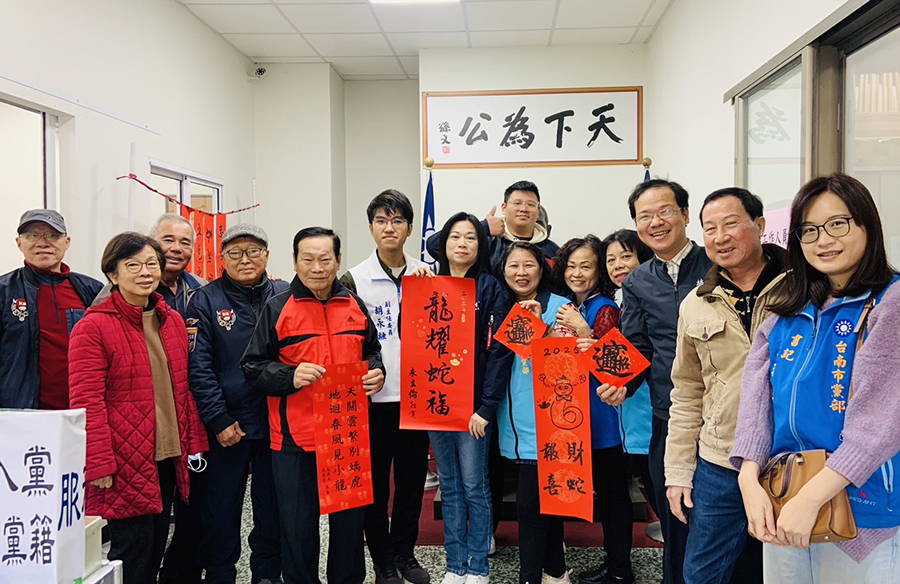 承辦單位東區黨部主委陳淑玲說,這次與府城藍天聯誼會共同承辦,也感謝東區黨部委員會、婦工會蔡瑞玉會長帶領姐妹一同協助,不僅為民眾帶來歡樂,更讓傳統文化在新春時節得以重現,書法老師結合書藝與國畫,把春聯變成一件藝術品,加上蛇年諧音賀詞,也為年節增加多一份的趣味。
