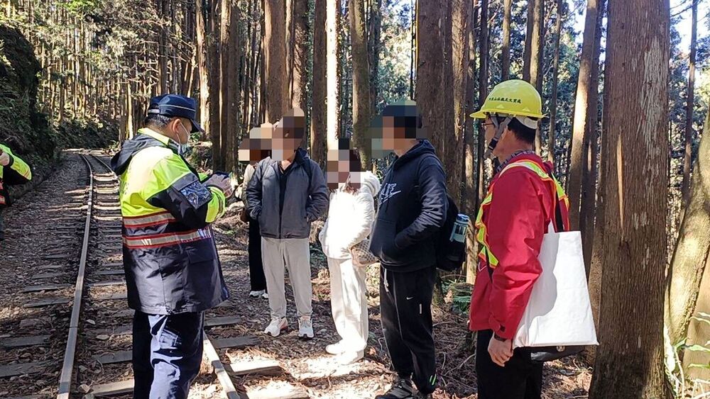 農業部林業及自然保育署阿里山林業鐵路及文化資產管理處13日上午會同嘉義縣警察局竹崎分局阿里山派出所,由二萬平車站循鐵路往嘉義方向執行取締,當場發現5名遊客違規行走軌道,依據鐵路法第70條規定,行人、車輛不得侵入鐵路路線、橋梁、隧道內,違者將處新臺幣1萬元以上5萬元以下罰鍰,為一人一罰,後續將由竹崎分局函送交通部鐵道局裁罰。林鐵及文資處呼籲,請民眾切勿行走軌道,以免觸法,以維護行車與自身安全。