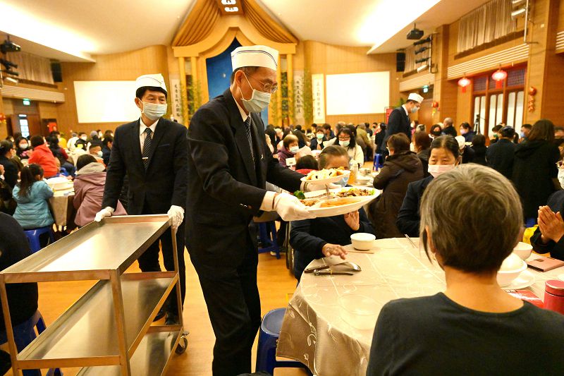 每道菜背後都凝聚著慈濟志工的愛心,透過這場特別的圍爐宴,溫暖了感恩戶的身心,陳明足感慨地說:「每一道菜不僅是食物,更是慈濟大家庭的祝福,承載著志工對感恩戶健康與幸福的深深期許。」暖暖湯水香氣四溢,傳遞著對感恩戶的貼心關懷,提醒大家要好好保重身體,迎接新年的到來。