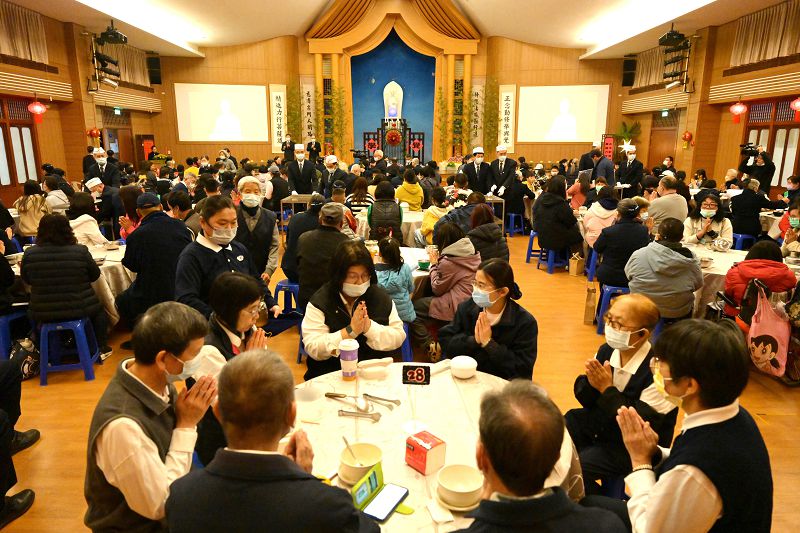 慈濟香積組的志工們,天未亮便投入準備,細心烹製適合年節圍爐的素食佳餚。十道寓意吉祥的料理,從選材到製作,每一步都蘊含滿滿的心意。志工陳明足帶領香積團隊,用心準備的菜色包括日本花菇紅燒蠔油、素赤羹、青蘆筍炒白菜、原味猴頭菇炒香油、素鮑魚扣皿及十全大補湯等,精緻菜餚不僅飽含年節氛圍,更象徵「十全十美」的祝福。