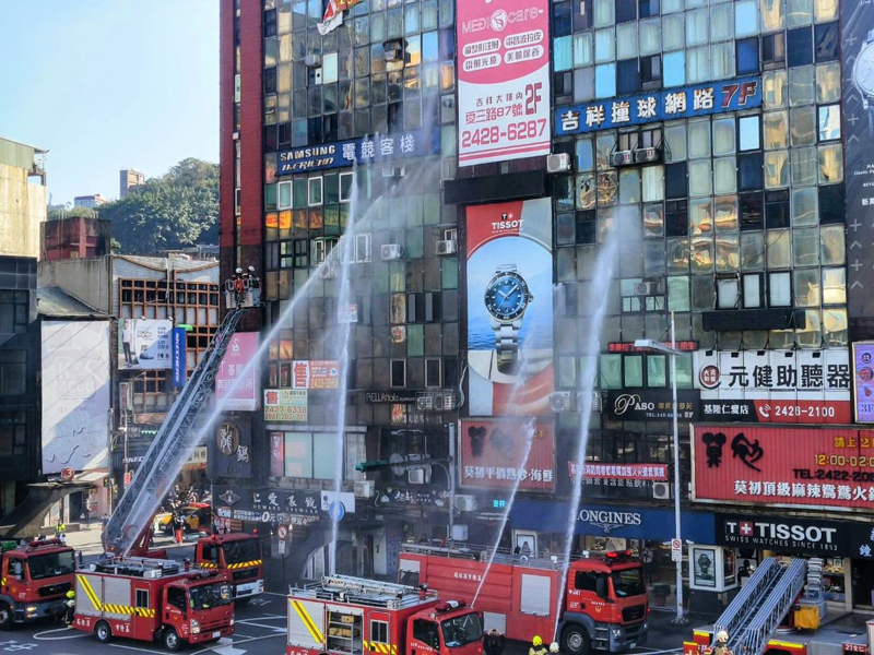 對於高空救援部分,仁愛分隊及信二分隊各派遣直線雲梯車各一輛,執行待救者救生作業及大樓周界防護。大樓正面由水箱車負責壓制火勢,雙節梯協助人員撤離,大隊幕僚利用救災安全管制APP,對作戰、水源、通訊與安全進行全面監控,確保現場秩序。