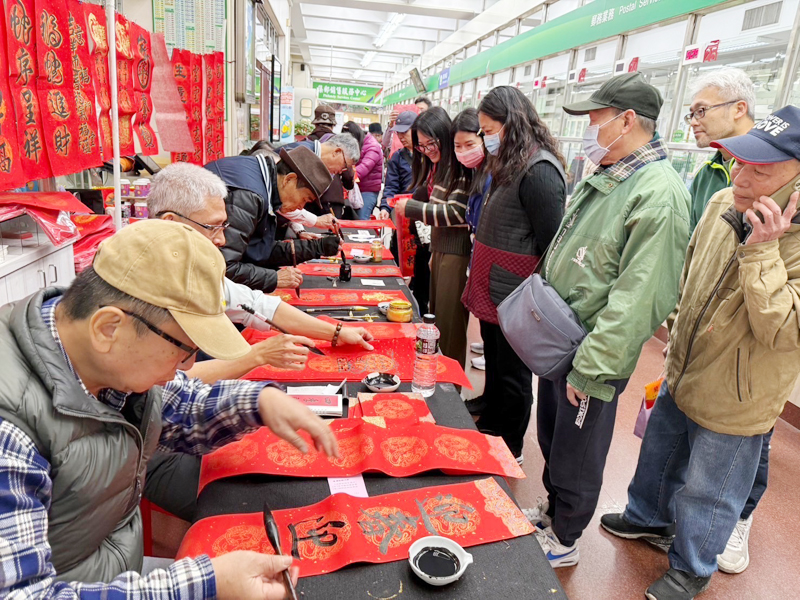 【記者張毅基隆報導】基隆郵局為發揚傳統書法文化及增添新年節慶喜氣,於16日上午9點到11點三十30分在愛三路郵局營業廳,舉辦「蛇來運轉—新春揮毫贈春聯」活動。邀請「瑞芳書道學會」黃永坤理事長偕同四位書法老師,蒞臨現場揮毫,將傳統書法的美和手寫溫度融入每幅春聯創作之中,增添新年藝術及人文氣息。