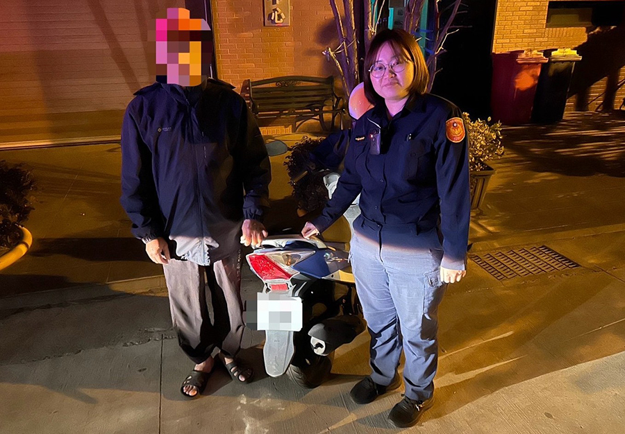 神岡區一名68歲吳姓老翁日前深夜欲騎車外出時,赫然發現應該在家中的機車竟不翼而飛,因擔心愛車遭不肖人士竊取利用,老翁隨即向警方尋求協助,員警獲報後,隨即調閱監視器協尋,不到5分鐘即順利助老翁尋獲車輛。豐原警分局社口派出所警員紀蒼佑、游謦慈於獲報後,立即趕赴至現埸,隨即展開調查,經調閱行車軌跡與監視器影像確認,初判吳翁記錯停車位置機率極大,便請吳翁回想前一天的行蹤,欲沿著其可能出入的地點進行地毯式搜尋,沒想到在第一個查找點—距離中山路他住處約200公尺的診所前尋獲車輛。吳翁見到愛車後,瞬間回憶起當日下午加油後曾騎車至診所看診,離開時卻忘記將車騎回住家,他連忙向員警致歉並感激地表示,「十分不好意思!我真的很冒失,謝謝大家的幫忙」,對於警方深夜協助尋車的高效率與熱忱服務,吳翁直呼佩服。分局長林大為建議,民眾停車時務必注意附近停車地點之特徵,現在手機拍照功能方便亦可以將車輛停放位置拍照留存,即能幫助回想並加速找到自己愛車的時間。(圖;記者馬淑娟/文:記者王雲彬)