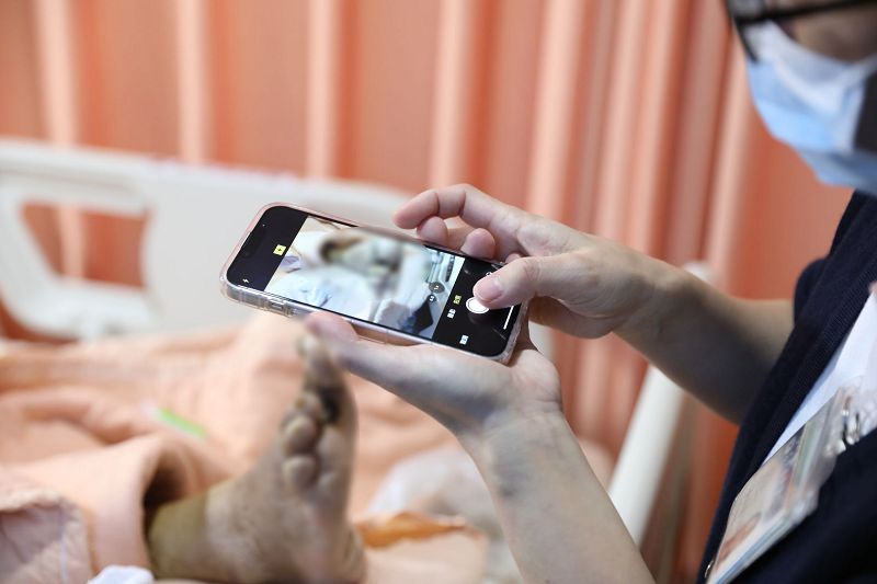 糖尿病足的傷口照護,也導入「BI輔助管理」提升效能,只要以APP應用程式拍照,10秒內即完成三步驟上傳到護理系統,不但有圖片便利追蹤傷口進展,護理師省下手打資料的時間與記憶錯誤的機會,同時也避免使用個人手機而有資訊安全和個人資料暴露風險。系統使用後,對病人傷口照顧改善幅度更高達35.7%。