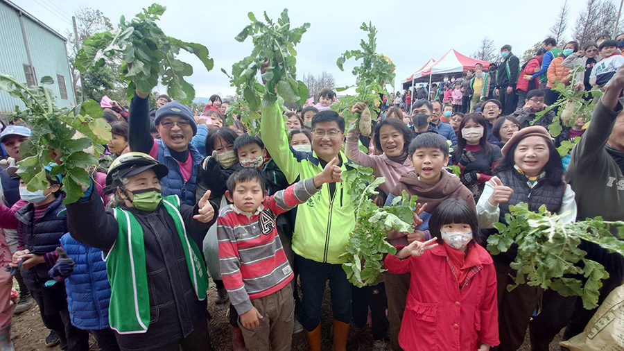 【記者楊川欽台中報導】迎春好菜頭,三千人於19日上午擠爆台中市清水區郊區的蘿蔔田,進行採蘿蔔活動,市議員楊典忠、立委何欣純等人除了到場參與,並力推食農教育,讓參加的民眾都覺得很有意義。