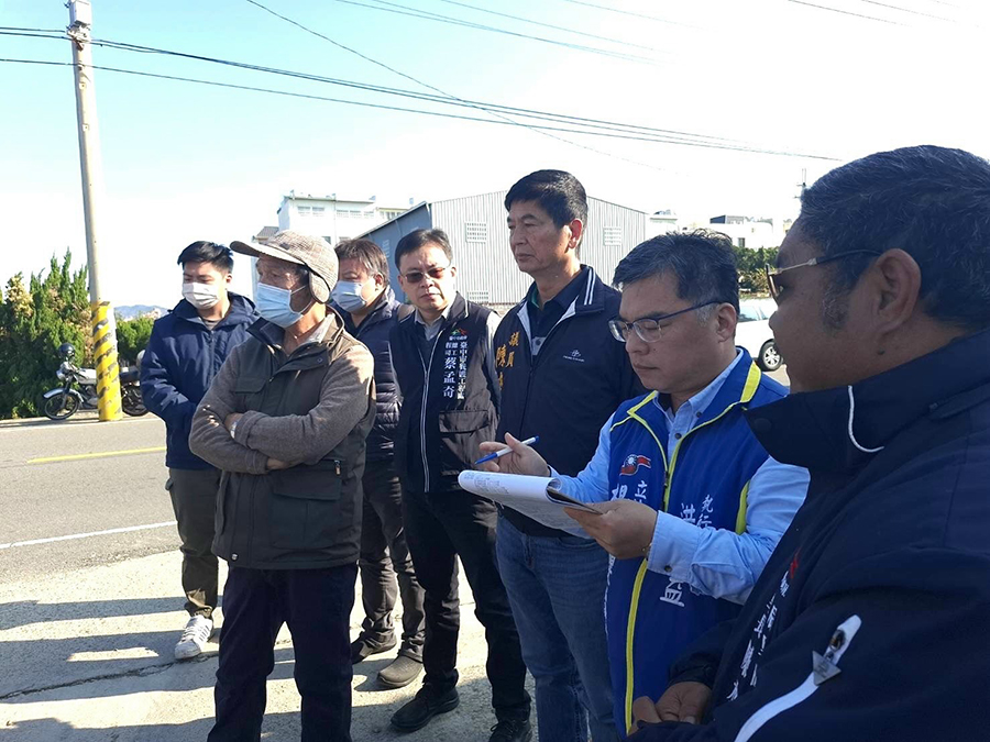 立委楊瓊瓔、市議員陳本添20日上午辦理「后里區公安路177至191 號側溝擋土設施重做及水溝加蓋」現勘,農田水利署臺中管理處、臺中市養護工程處、臺中市后里區公所及中和里長陳水波等單位代表出席,多位農民及住戶也到場關心。