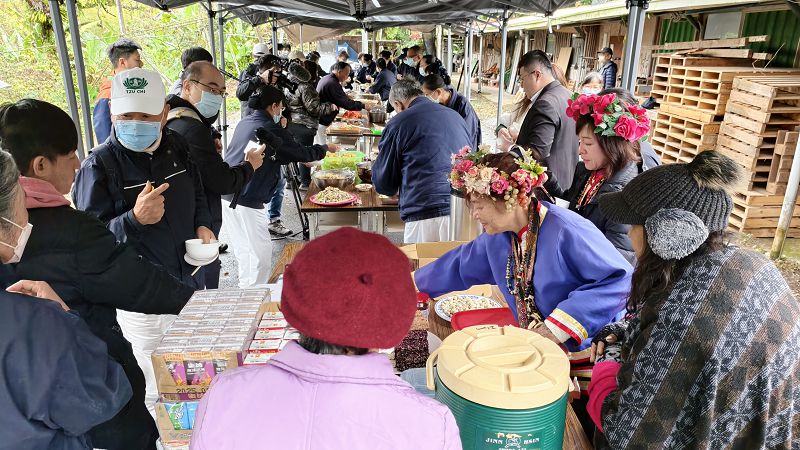慈濟志工以手語帶動開場表演,邵族鄉親身穿族服表演傳統歌舞,慈濟準備入戶關懷祝福禮,由志工分十多條路線把福袋送到家。魚池鄉長劉啟帆感恩慈濟對鄉親的照顧,也和慈發處呂芳川主任一起把祝福送到鄉親家。