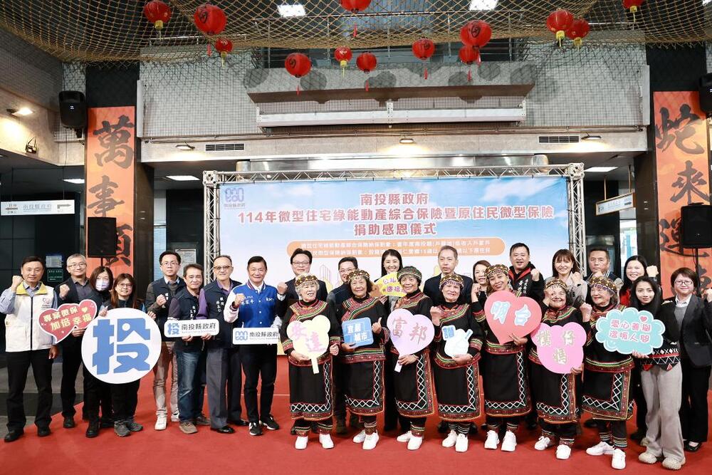 【記者陳良安南投報導】縣府2月10日上午在1樓大廳舉行「微型住宅綠能動產綜合保險暨原住民微型保險捐助感恩儀式」記者會,縣長許淑華感謝嘉義縣樸仔媽微型利他慈善會的統籌協助,促成明台產物保險公司、富邦人壽保險公司、安達國際人壽保險公司的愛心捐助,提供本縣低收入戶家戶「微型住宅綠能動產綜合保險」及「埔里鎮、仁愛鄉原住民微型保險」2項專案微型保險,讓弱勢民眾面對意外事故時,能獲得資源挹注,免於家庭生活頓失依靠。