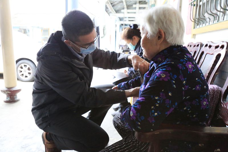 大林慈院簡振宇醫師關懷老爺爺健康,如家人般話家常。