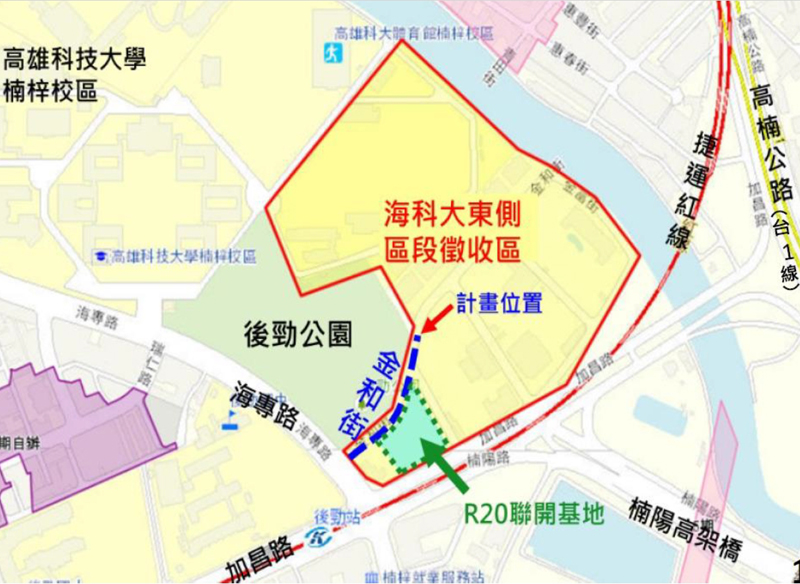 道工處表示,楠梓區金和街除鄰近後勁公園、捷運後勁站,附近有後勁國中小、高科大楠梓校區、後勁夜市、楠梓科技及產業園區等,且可銜接台1線高楠公路、楠梓火車站、國道1號楠梓交流道等重要節點,其區位優良,交通、民生機能相當便利,居住空間與環境需求仍持續看漲,也成了R20聯開案落腳之地。