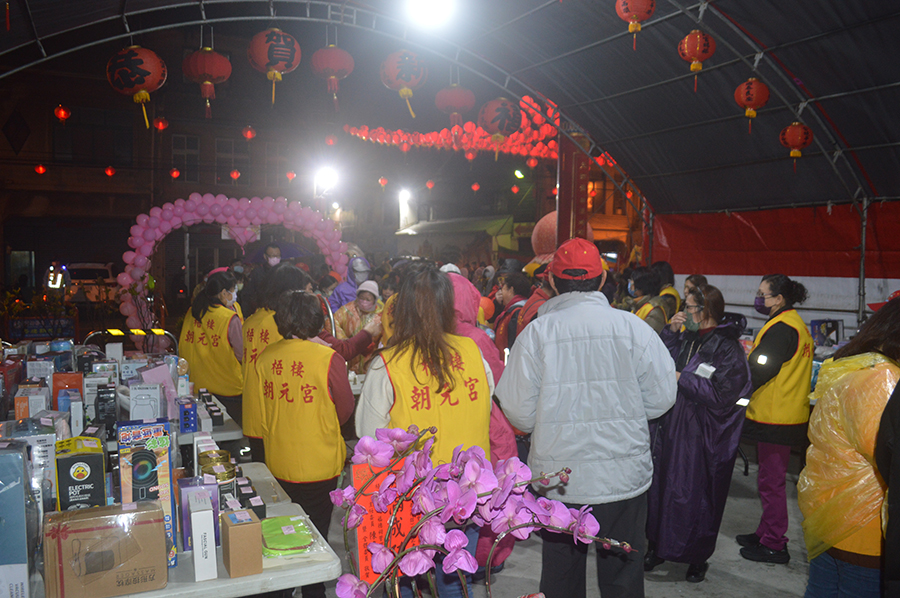 梧棲區朝元宮是地區歷史最為悠久的媽祖廟,同時也是地區的信仰中心,每年都舉辦元宵節提燈踩街活動,今年更因該宮準備建置一座供俸月老等神尊的殿宇,還特別製作月老燈組參與中台灣燈會展示,為此今年的提燈踩街活動更為盛大舉辦,但根據氣象預報,梧棲地區降雨機率80% ,主辦單位人員還擔心下雨,影響提燈踩街活動,主委尤碧玲特別召集所有執事人員,向媽祖祝禱,祈求風雨免朝。