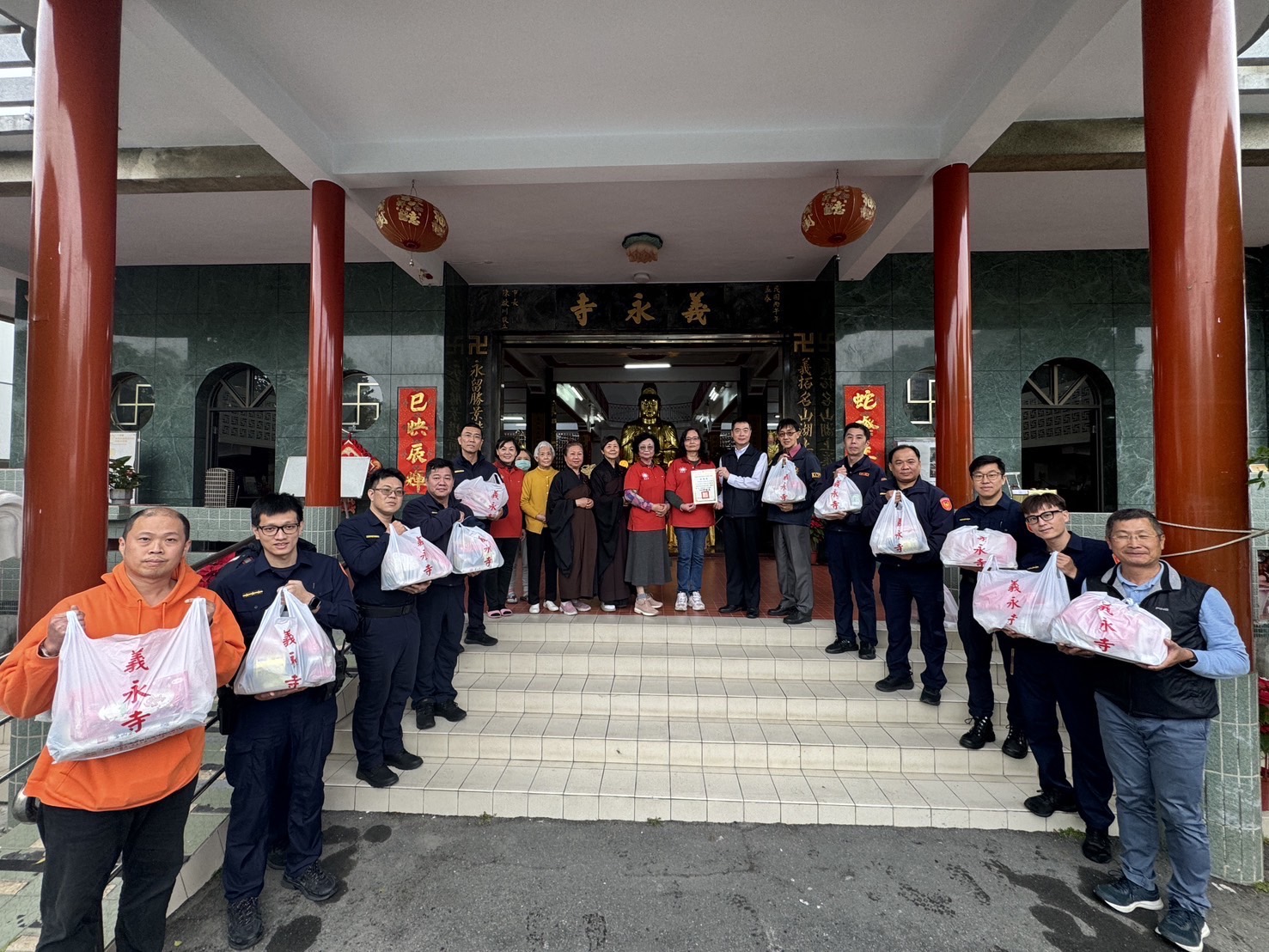 高雄三民區義永寺秉持慈悲為懷、助人為樂的善念,持續送溫暖關懷獨居高齡長者族群,準備了白米、沙拉油、麵條及點心餅乾等250份民生物資,委請三民第二分局協助發送,幫助獨居高齡長者及低收入戶,不僅省去採買之不便,造福田在這片土地上感恩與惜福的精神,讓善念、義舉源遠流長。三民第二分局分局長許健基帶領下,親自前往義永寺參加捐賬儀式,義永寺負責人顏惠瑩女士表示,派出所員警是第一線處理民眾大小事,更是第一時間發現需要協助的弱勢民眾,期望藉由這一份生活物資,能帶給她們溫馨的氣氛,也呼籲大家熱心公益,為需要幫助的人,盡一份心力,讓社會更加充滿愛與溫暖。分局長許健基表示,平時員警執勤發現需要幫助的家庭,除了通報相關單位,即會結合民間團體力量,共同關懷、慰問,讓實際行動及滿滿的愛心為社會獻上最溫暖的關懷。本次透過義永寺提供的愛心物資捐贈給獨居、高齡長者,將善心化作大愛,幫助更多需要幫助的人,同時警方也會持續為地方交通及治安來打拼。【圖文:記者張福全】