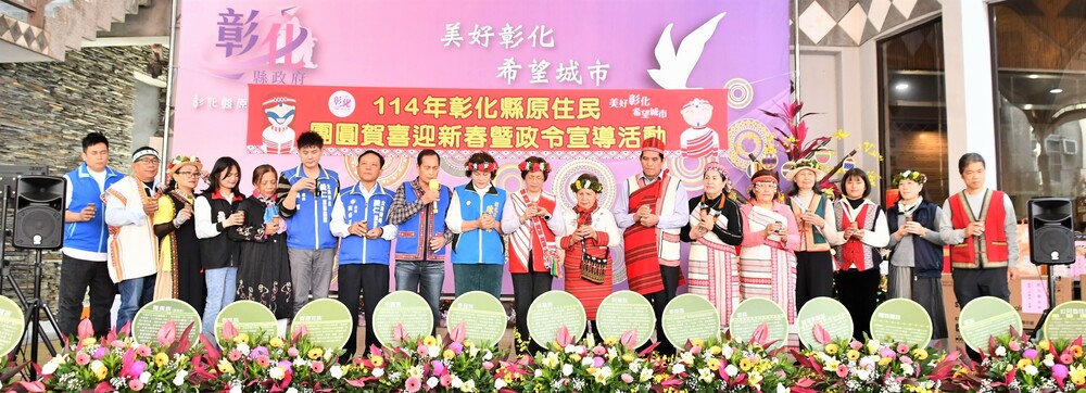 【記者鄭惠珠彰化報導】為讓彰化縣內原住民朋友感受春節歡樂氣氛,並作為各族傳統文化維繫橋梁,彰化縣長王惠美、縣議員陳榮妹與原住民各族族人,15日在彰化縣原住民生活館一起喜迎新春,與會人員互道祝福,並藉此宣導各項政令,使族人深入瞭解政府的施政方針及對原住民族各項福利的重視與關懷。