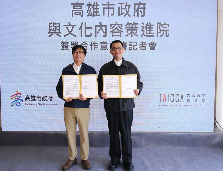 【記者陳志昌高雄報導】高市府17日在駁二藝術特區共創2號基地,與文化內容策進院正式簽署合作意向書,將合作推動南部文創產業發展,由高雄市長陳其邁與文策院董事長蔡嘉駿共同簽署文件,現場並有李懷仁副市長、林岱樺委員、湯詠瑜議員、科技業者、文創內容業者等貴賓一同見證這項重要合作,文策院也帶領現場貴賓參觀共創2號基地內南部營運中心辦公室,介紹未來機能與運作模式,高市府未來將借助南部營運中心的資源,支持在地文創團隊的發展。