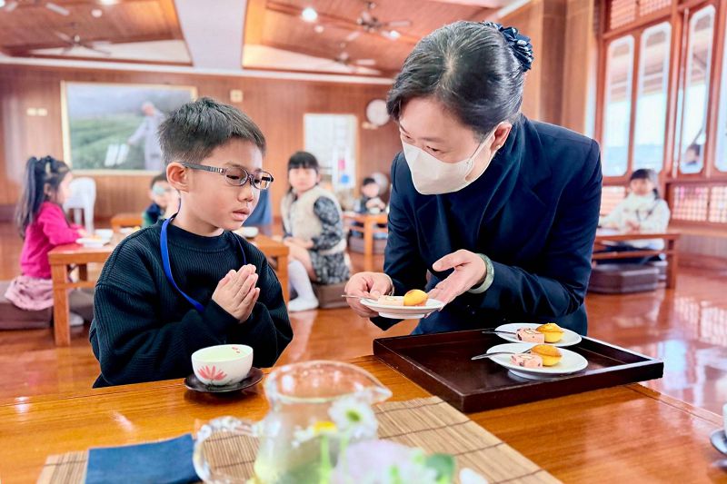 參加茶道體驗課程的林○安小朋友很喜歡茶道老師準備的點心,還學到三好茶就是「心發好願、口說好話、身行好事」,回家後要和家人分享茶道課學到的禮儀。」來自幼芽幼兒園林○逸喜歡上花道課,她說:「花道課程中認識自己沒有看過的花,想把「幸福」帶回家和爸爸媽媽分享。」