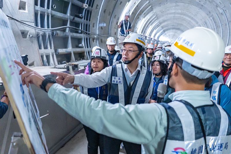 桃園市長張善政視察捷運綠線傳統圓隧道及聯絡通道工程 盼如期達成115年北段通車目標。