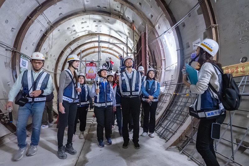 張善政實地視察工程地下20公尺隧道後指出,G11藝文特區站至G12蘆興埤站是明年預計通車路線中唯一的地下段,除了需貫通隧道外,還需完成相關基礎軌道設施和機電系統等,因此他特別感謝捷工局同仁克服諸多工程技術挑戰,成功達成施工縮短99天的目標,並在軌道施工同時,同步進行隧道間的逃生聯絡通道施工。