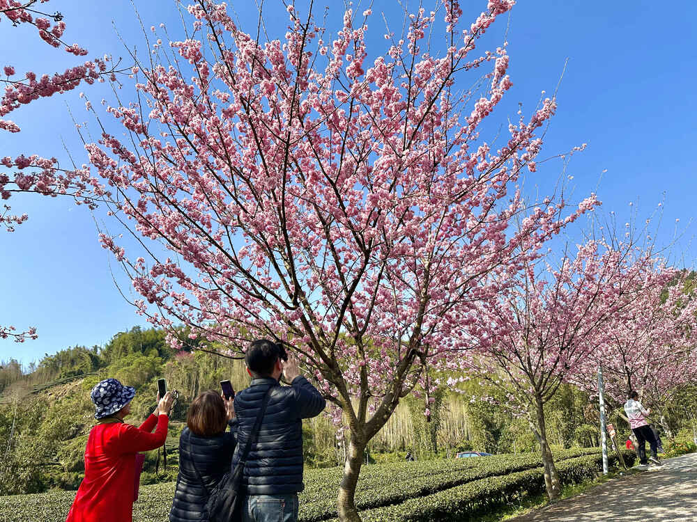 「中興製茶所」櫻花盛開,粉色櫻花海與翠綠茶園及遠山交相輝映,構成一幅迷人的自然畫卷。賞櫻之餘,阿里山的茶文化也不容錯過,可參加茶席體驗,在職人帶領下學習正統茶道,細品高山茶的甘醇風味,還能親自走入茶園採摘茶葉。