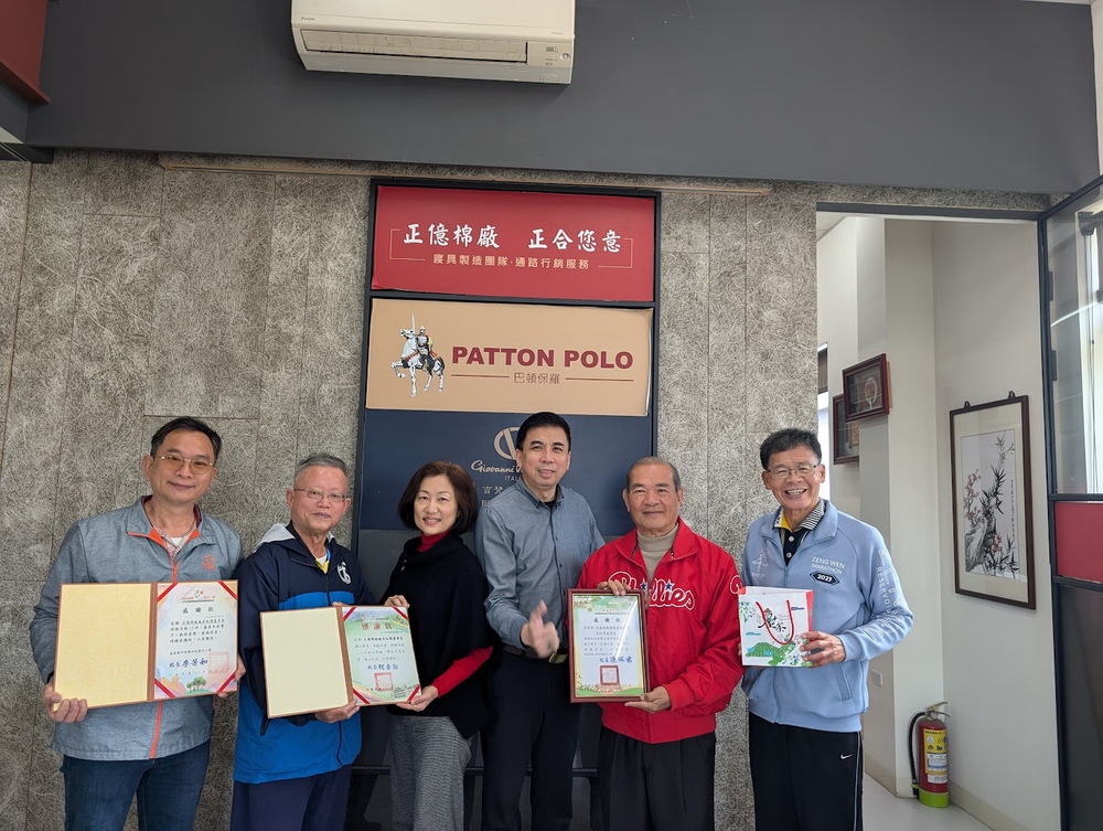 太興陳佩君、太平何素勤、沙坑李芳如3校校長,感謝吳松儒董事長捐贈棉被特別致贈感謝狀給正億棉廠董事長吳松儒。王建龍前處長一行人昨天將3校感謝狀專程送到正億棉廠。